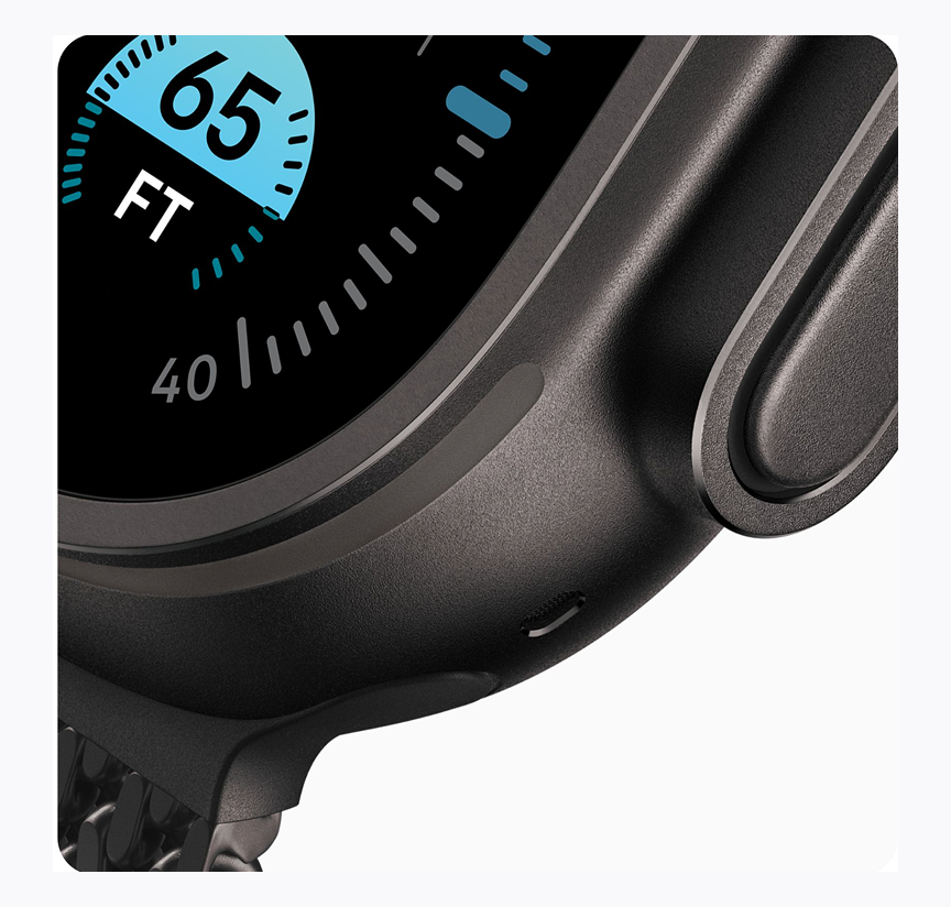 The 49mm Retina display on Apple Watch Ultra offers exceptional brightness and sharp touch response. Therefore, users can easily view metrics in bright sunlight or challenging outdoor conditions. In addition, the black titanium case enhances strength while maintaining a lightweight and comfortable feel.